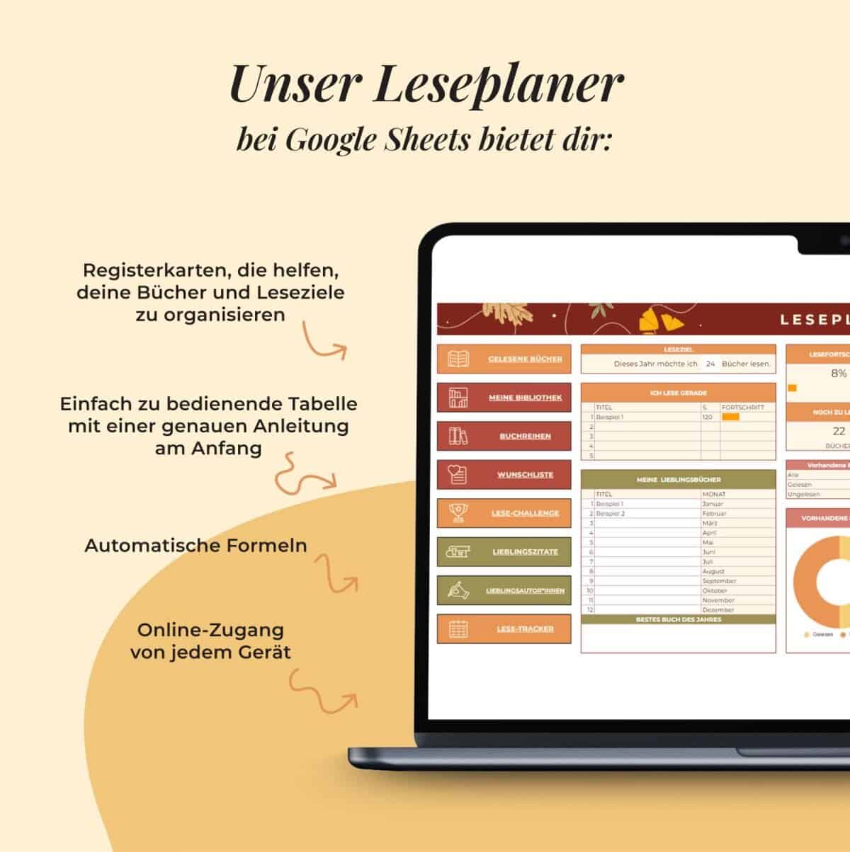 Optimiere deine Lesegewohnheiten mit unserem praktischen Bücherwurm-Planer in Google Sheets. Dieser Planer hilft dir, deine Lektüre zu organisieren, deine Lesefortschritte zu verfolgen und deine Ziele zu setzen – alles an einem Ort!