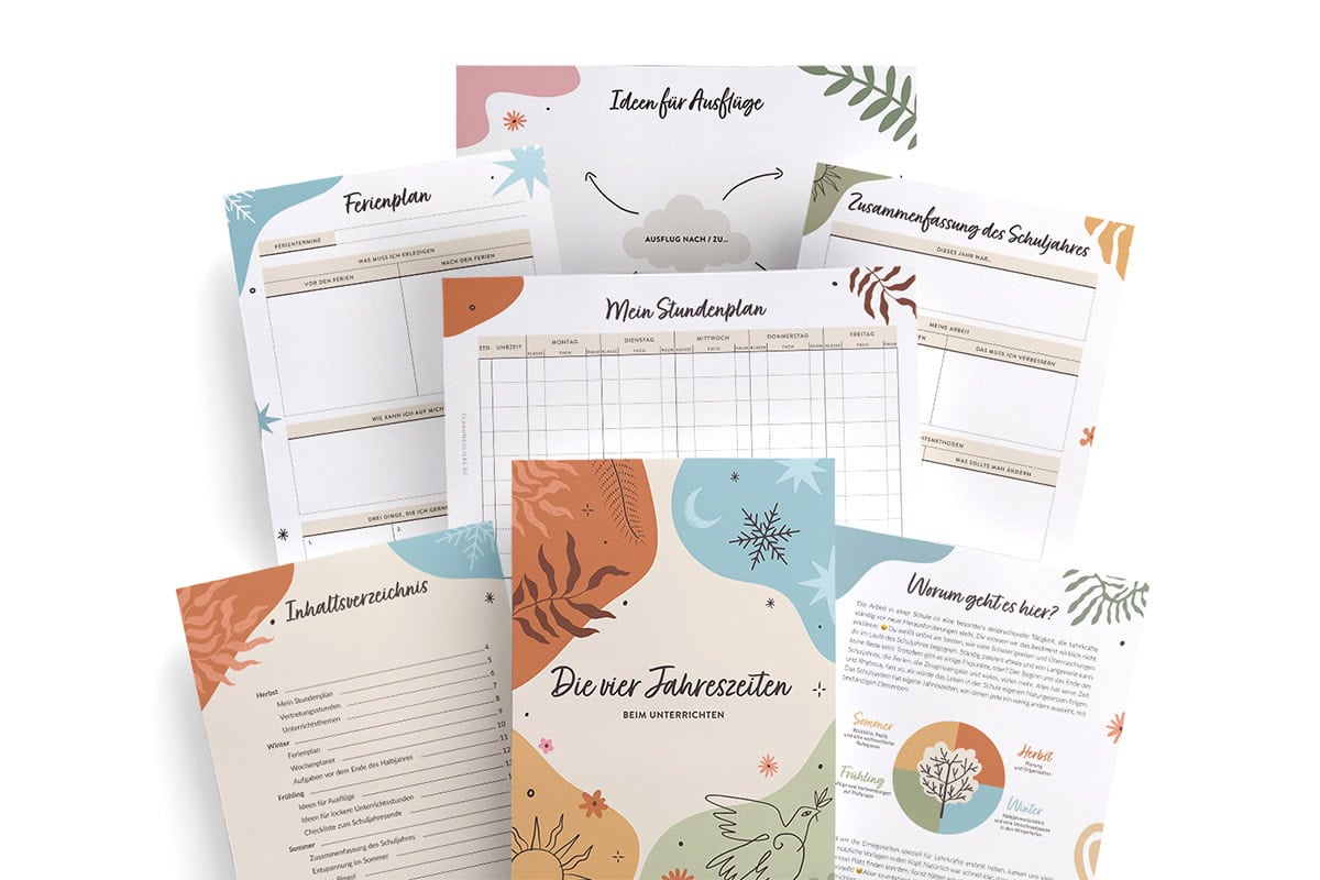 Die Schule hat ihren eigenen Rhythmus, ganz so wie die Jahreszeiten – mal planst du Ausflüge, mal fasst du das Halbjahr zusammen oder versuchst einfach, einen Moment zum Durchatmen zu finden. Dieser Planer hilft dir, all das in Ruhe zu organisieren.