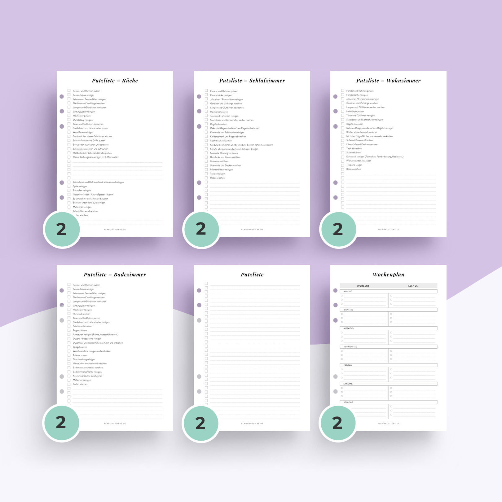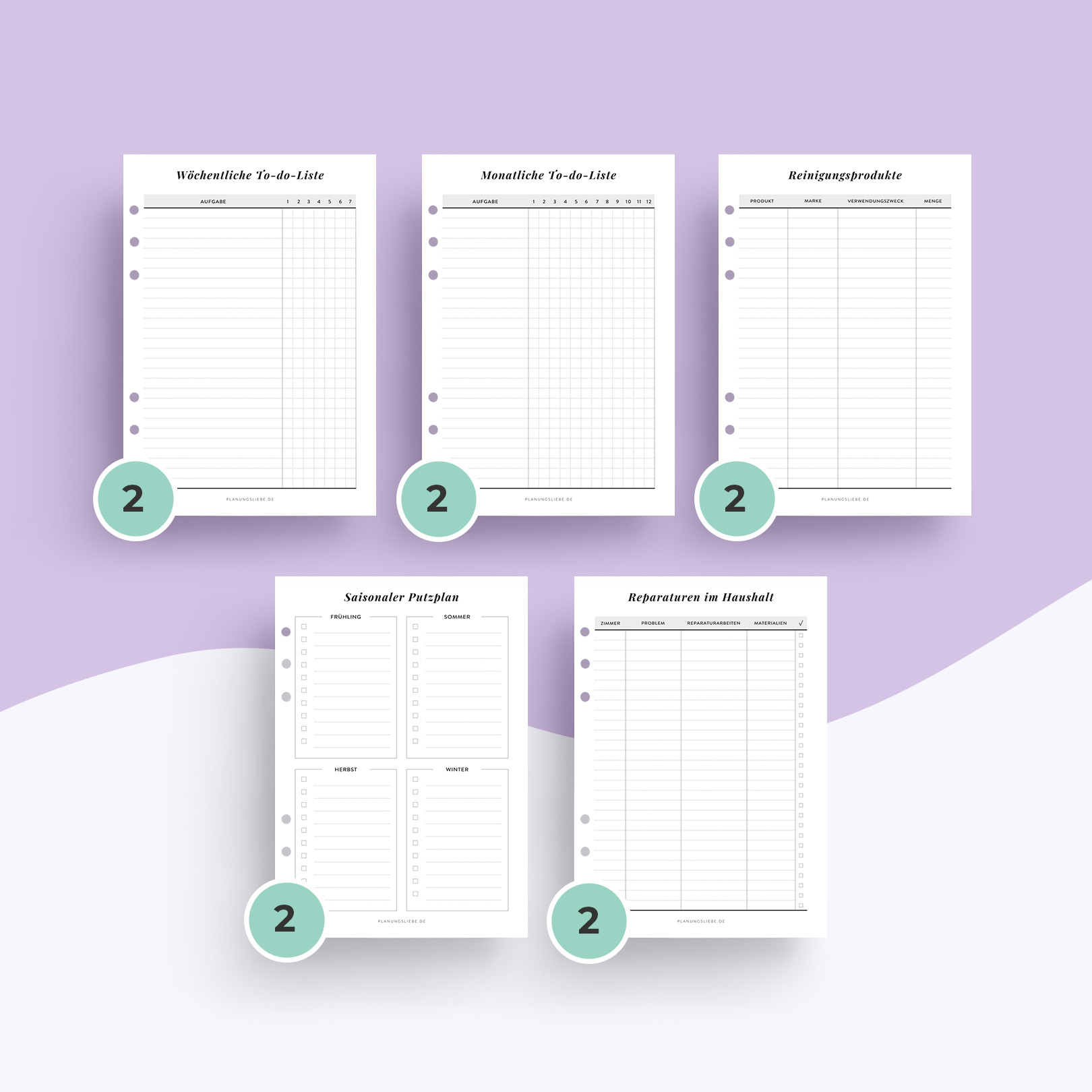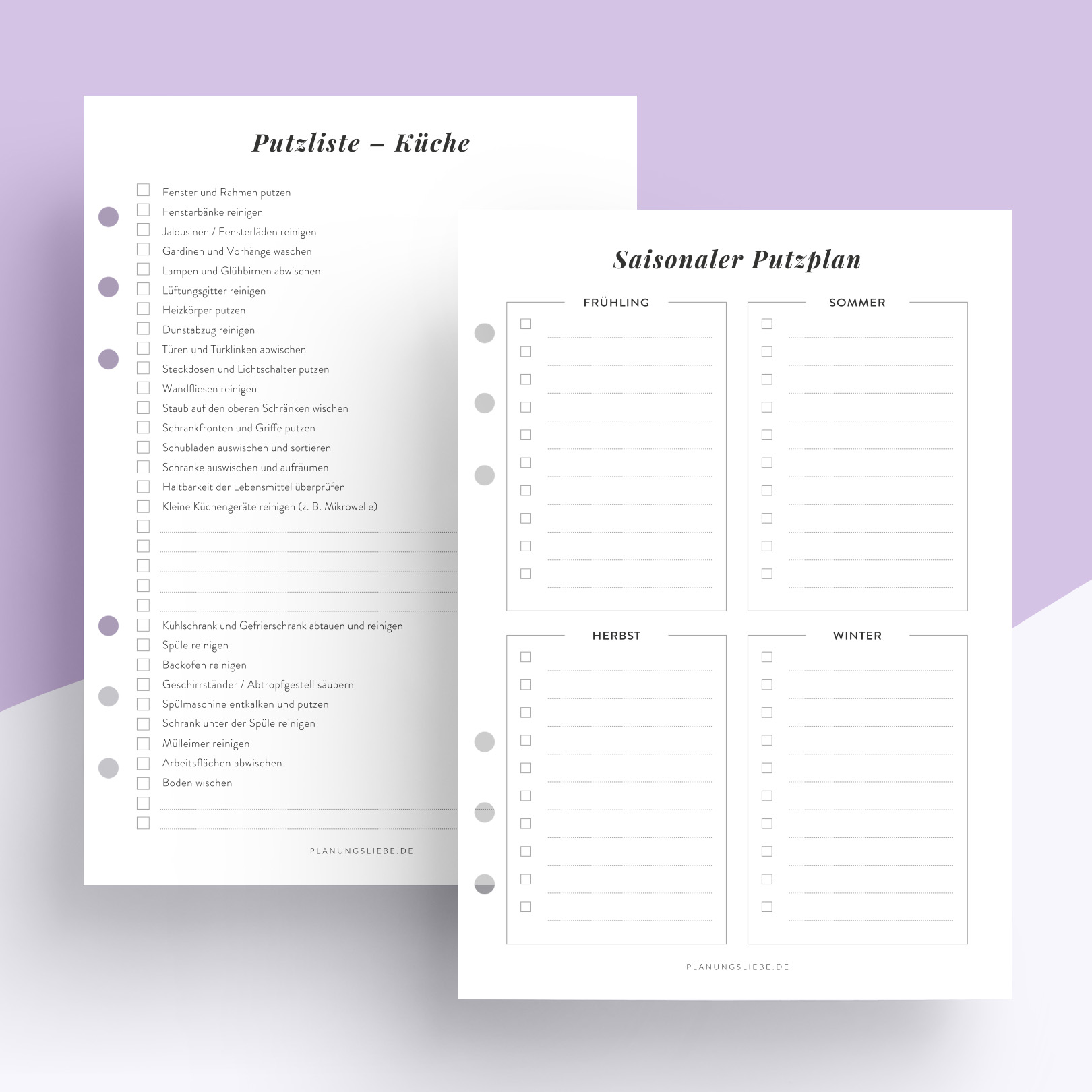 Die Einlagen sind speziell für A5-Organizer mit 6-Ring-System designt, sodass du sie einfach in deinen Planer einheften und jederzeit griffbereit haben kannst. Ob für tägliche Aufgaben, saisonale Putzpläne oder Reparaturen im Haushalt, diese Einlagen bieten dir alles, was du für eine gute Haushaltsorganisation brauchst.