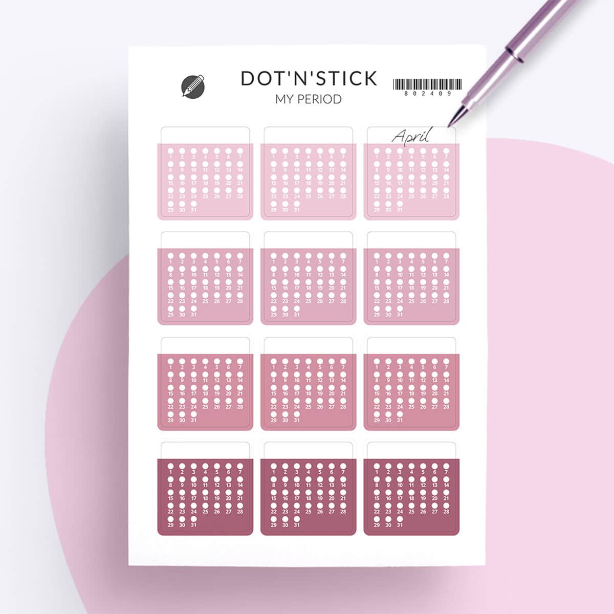 Wenn du deinen Zyklus gerne übersichtlich und auf Papier festhältst, sind die „My Period” Planer Aufkleber genau das Richtige für dich. Die Sticker sind wie kleine Monatsübersichten aufgebaut. Jeder Aufkleber zeigt dir ein komplettes Kalenderlayout, sodass du deinen Zyklus für den ganzen Monat an einem Ort markieren kannst.
