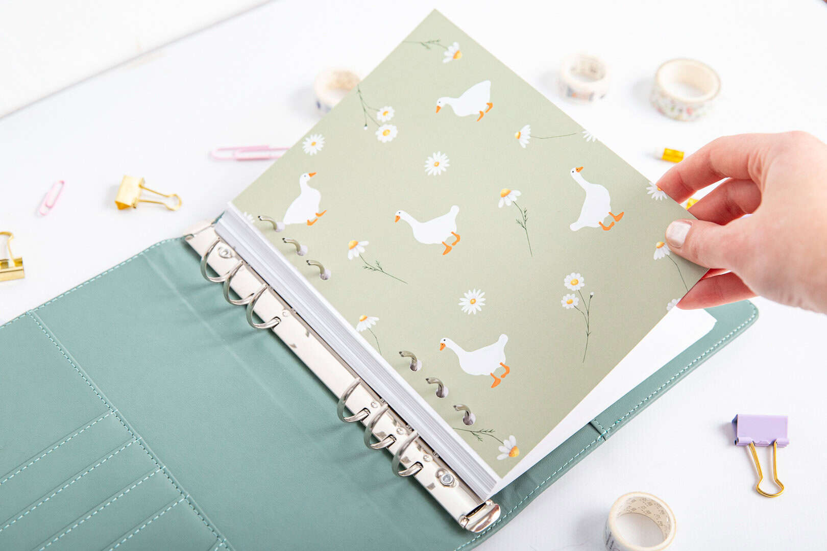 Die Titelseite „Gänse“ für deinen Ringbuchplaner ist eine fröhliche Möglichkeit, Ordnung in deinen Notizen zu schaffen.