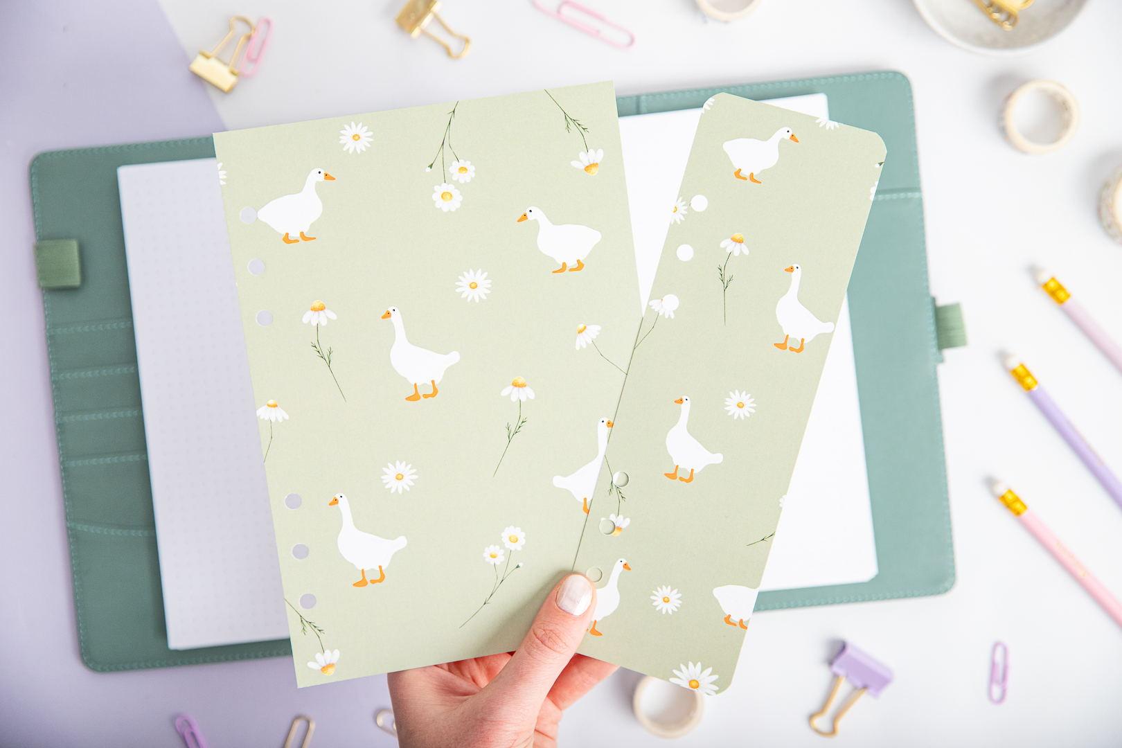 Set für deinen Ringbuchplaner | Titelseite & Lesezeichen – Gänse