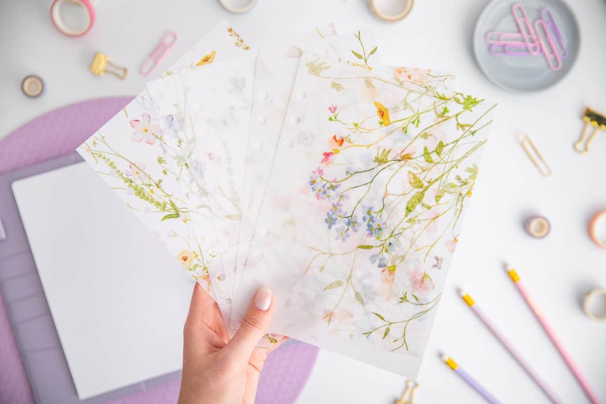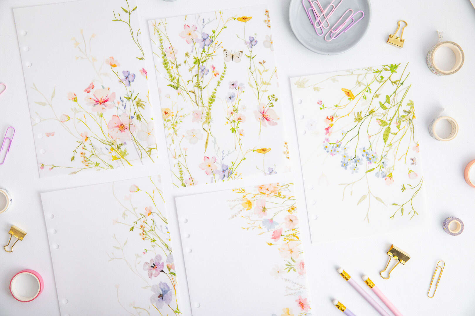 Trennblätter für Ringbuchplaner – Aquarellwiese | Transparentpapier