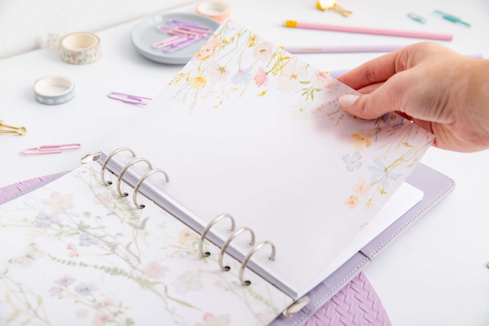 Jedes Blatt hat ein eigenes florales Motiv – und doch ergeben sie zusammen ein harmonisches Gesamtbild. Perfekt kombinierbar mit pastellfarbenen Covern und zartem Zubehör.Das Papier ist dünn und flexibel, trägt also nicht auf – und trotzdem stabil genug, um im Ringbuchplaner perfekt zu halten.